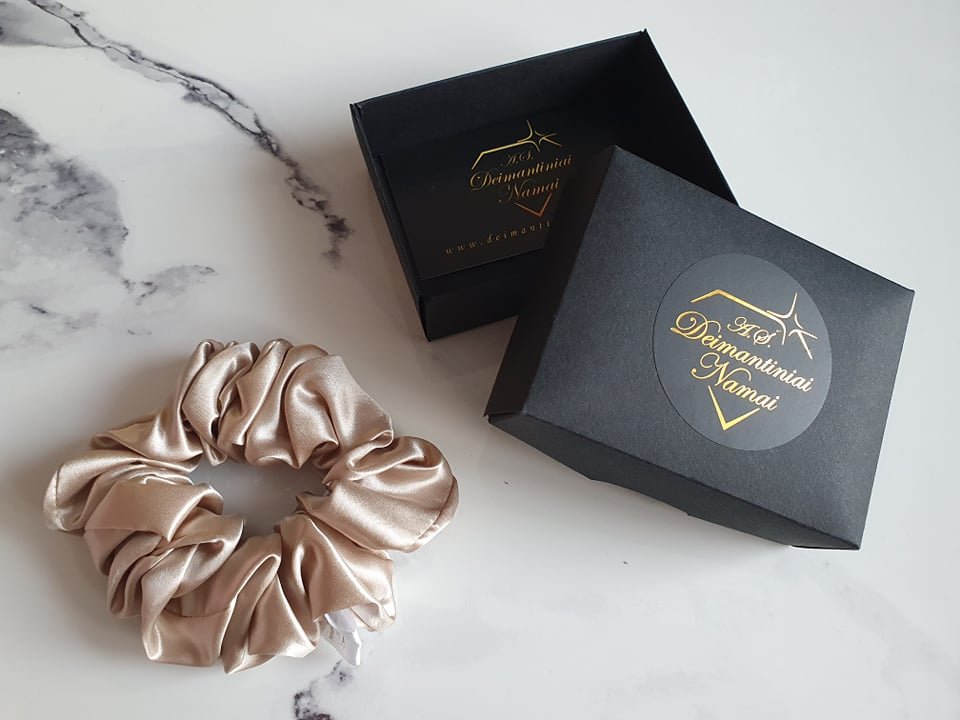 100% Mulberry šilko plaukų gumytė, M dydis, smėlio sp.