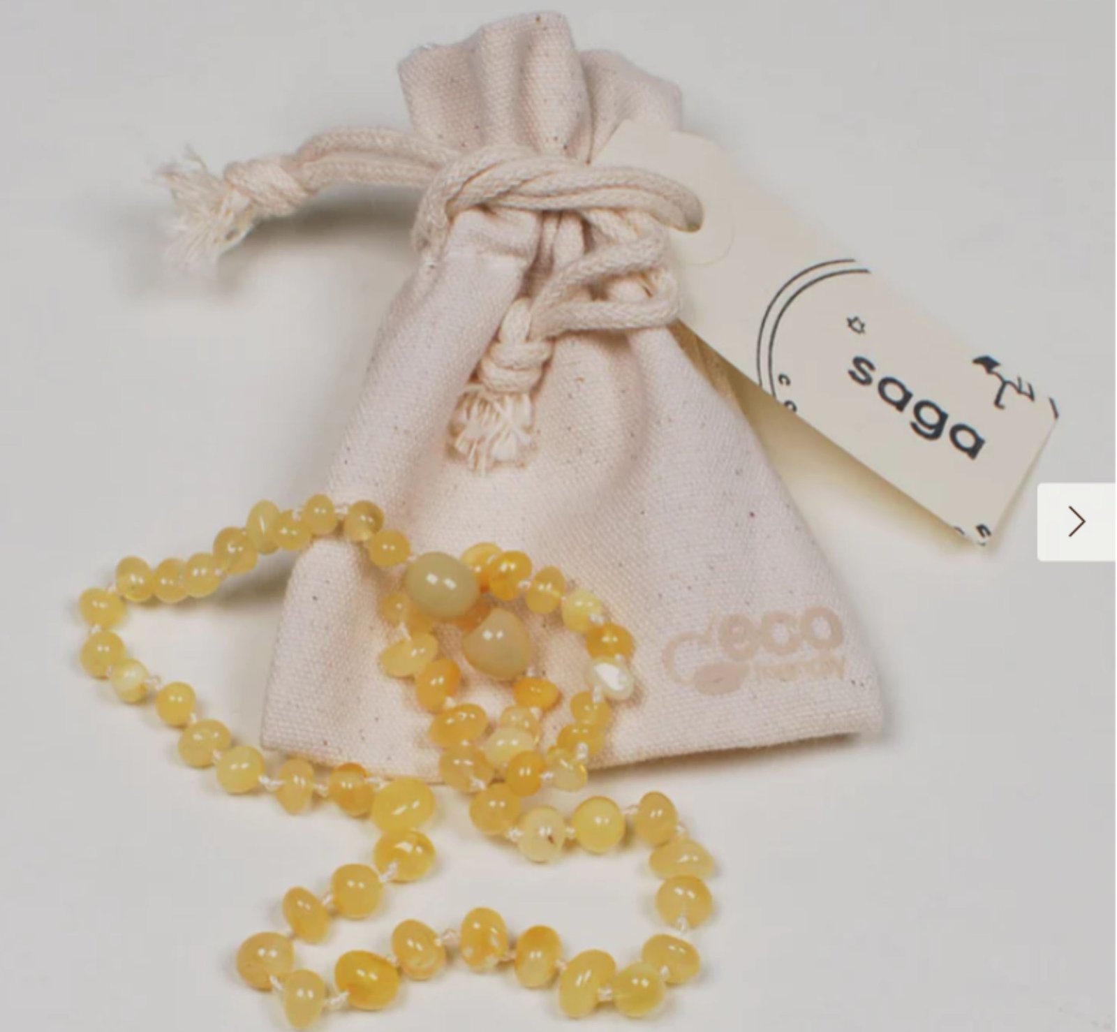 Kai gintaras liečiasi su oda, jis išskiria gintaro rūgštį. Gintaro rūgštis yra galingas antioksidantas, saugantis organizmo ląsteles. Stiprus antioksidantas turi priešuždegiminių savybių, kurios, kaip teigiama, mažina kūdikio dantų skausmą.