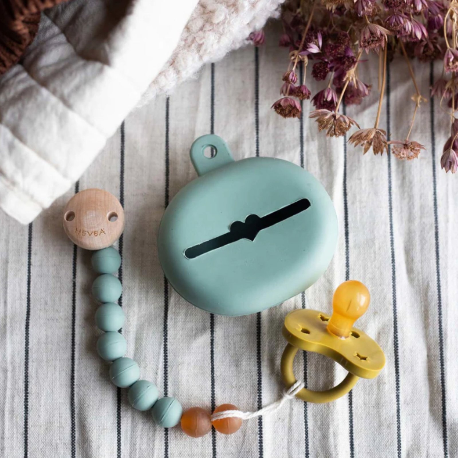 Laikiklis su užsegimu tinka čiulptukams, kramtukams bei kitiems mažylių daiktams prisegti. Tai ne tik patogus, įdomus, bet ir stilingas mažylių aksesuaras. Šio laikiklio pagrindinis akcentas rankų darbo nertas meškutis. Taip pat naudojami: silikoniniai ir mediniai karoliukai bei metalinis užsegimas.