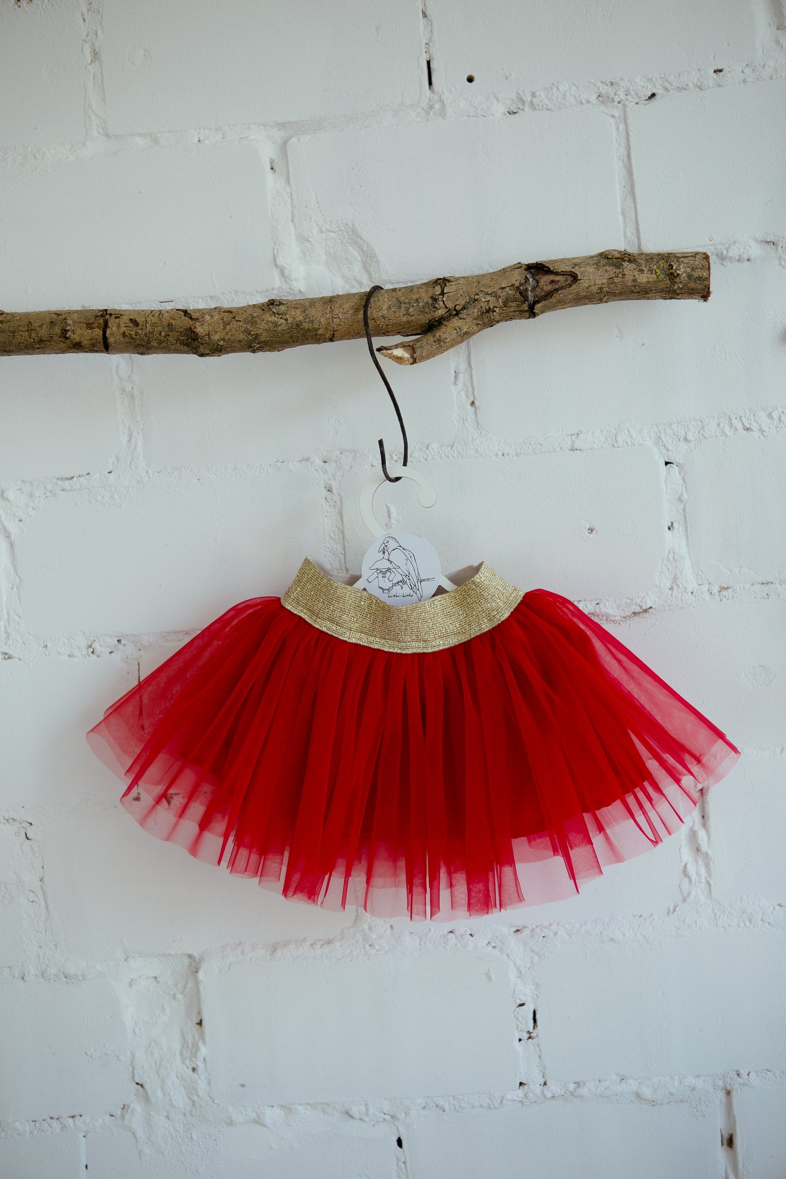 Sijonėlis iš dviejų sluoksnių tiulio su puošnia tampria guma.