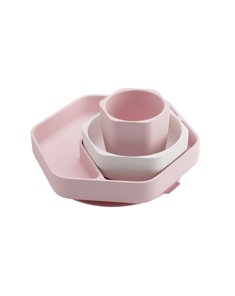 Aukšos kokybės silikono indų rinkinys. Ryški indų spalva patraukia vaiko dėmesį, skatina mažyli domėtis maistu.Tvirtai prilimpantis prie paviršiaus dubenėlis ir lėkštė. Puodelis itin ergonomiškas, stabiliu pagrindu.