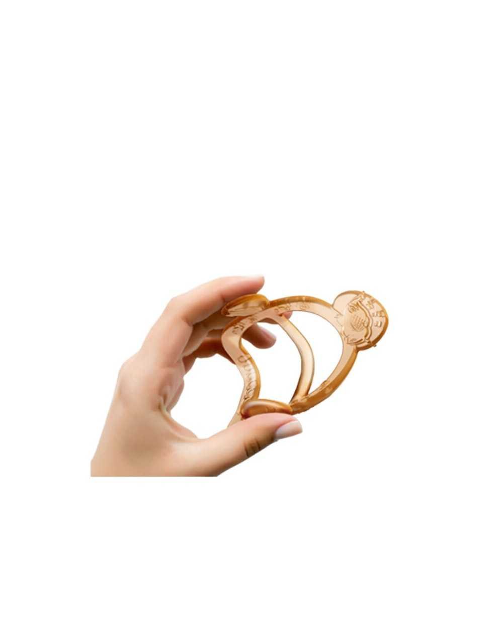 Tinkamo ilgio dirželis, prisitvirtina ant rankos, kaip laikrodžio apyrankė. Dydį galima lengvai reguliuoti. Didžiausias kramtuko apyrankės privalumas, mažylis jo nepames. Lengvai reguliuojama kramtuko apyrankė apsaugo nuo įspaudų, tinkama kūdikiui nuo 3-12 mėnesių.