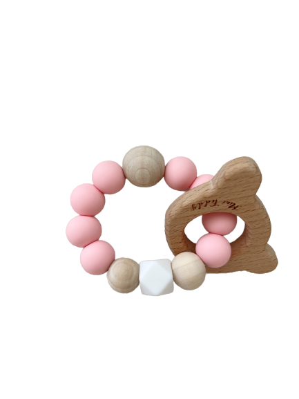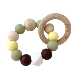 Aprašymas: kramtuko įvairios formos, faktūros bei spalvos lavina mažylių smulkiąją motoriką. Šį kramtuką sudaro medinis žiedas-meškiukas, mediniai ir silikoniniai karoliukai. Silikoniniai karoliukai pagaminti iš saugaus maistinio silikono, be BPA, fosfatų, švino ir kitų kenksmingų medžiagų.