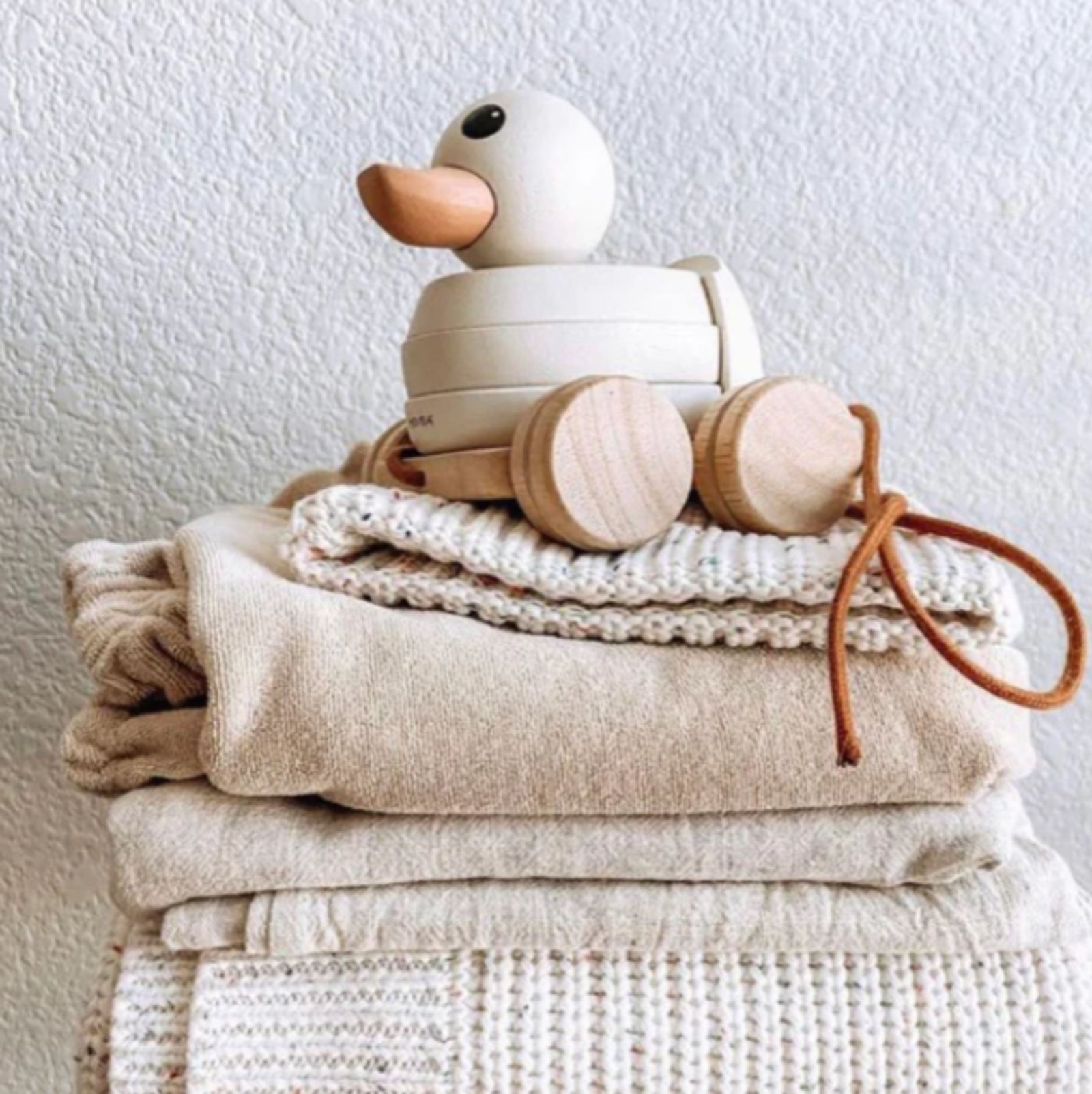 Padėkite savo kūdikiui tobulinti motorinę koordinaciją, kai vedate „draugą“ į pasivaikščiojimą. Medinė antytė Kawan yra puiki pagalbininkė. Antytę galima dėlioti, todėl lavinama rankų bei akių koordinacija.