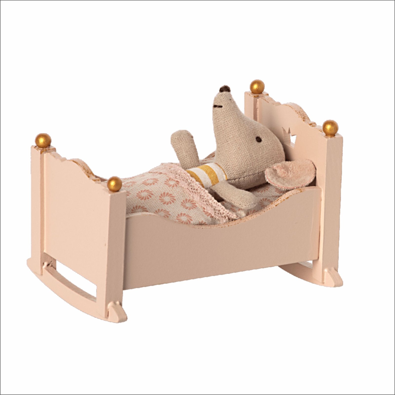 Maileg Baby mouse lovytė, rožinė