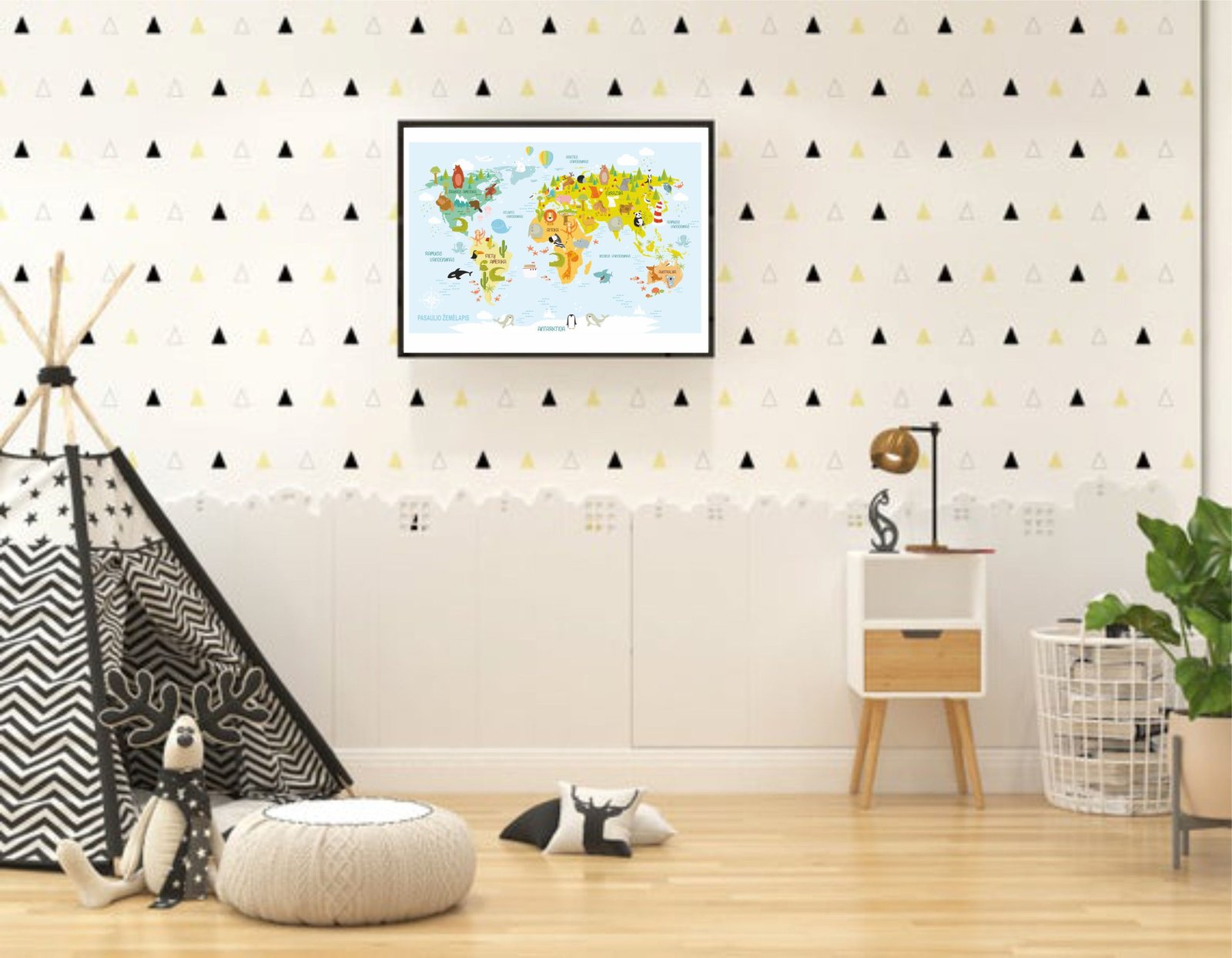 Tags: interjeras, kambario jaukumui, kambarys, pasaulio žemėlapis, paveikslas, piešinys, plakatas, vaikų